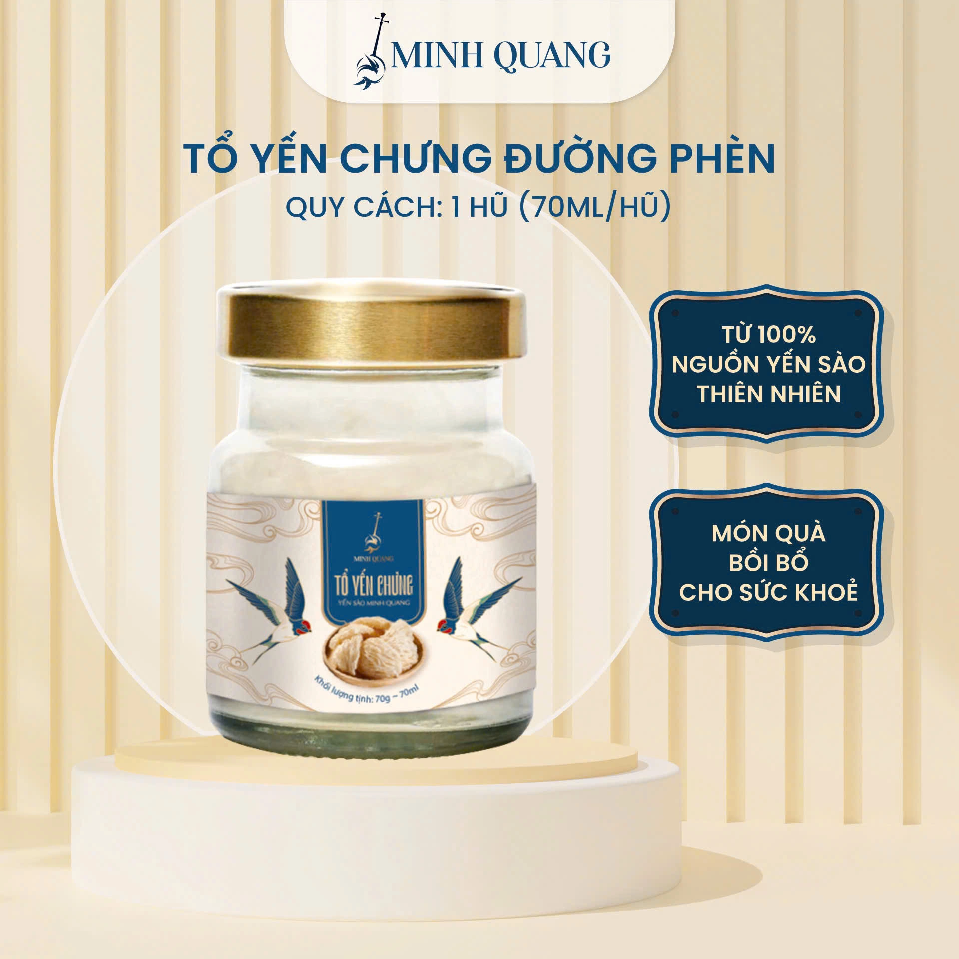 Yến chưng hũ của Yến Sào Minh Quang là sản phẩm được chế biến sẵn, tiện lợi và giữ trọn tinh hoa dinh dưỡng từ tổ yến nguyên chất. Với hương vị thơm ngon tự nhiên, sản phẩm này là lựa chọn lý tưởng cho những ai muốn bổ sung dinh dưỡng mà không cần mất thời gian chế biến.